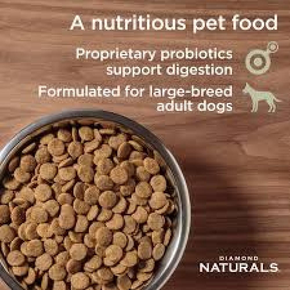 Give your large breed adult dog the superior nutrition she deserves with Diamond Naturals Large Breed Adult Lamb Meal & Rice Formula Dry Dog Food! Each Diamond Naturals dry formula is enhanced with superfoods and guaranteed probiotics to support your furry friend’s development and overall health. This large breed adult dry dog food recipe is made with real lamb protein, whole grain brown rice and real fruit and vegetables including peas, kale, blueberries and coconut! It provides your furry friend with protein and minerals, along with omega fatty acids to help promote healthy skin and a shiny coat, plus antioxidants for overall nose-to-tail well-being. Help your pal achieve a complete and balanced holistic diet with Diamond!