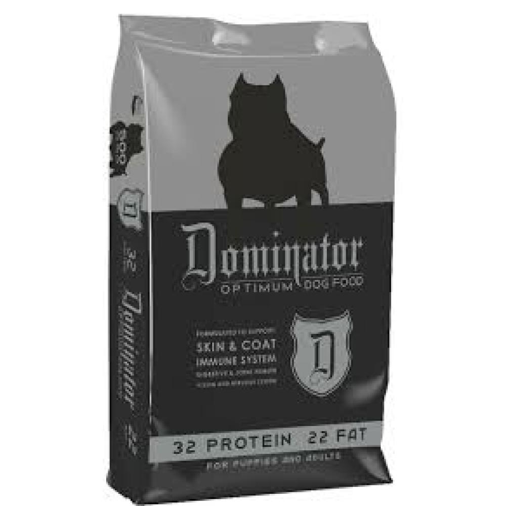 DOMINATOR DOG FOOD WAS FORMULATED TO MEET THE HIGH STANDARDS YOU DEMAND FOR YOUR DOG. 32% PROTEIN & 22% FAT WILL PROVIDE THE ENERGY AND STAMINA YOUR DOG NEEDS TO THRIVE, EXCEL & DOMINATE IN GROWTH & MUSCLE DEVELOPMENT.