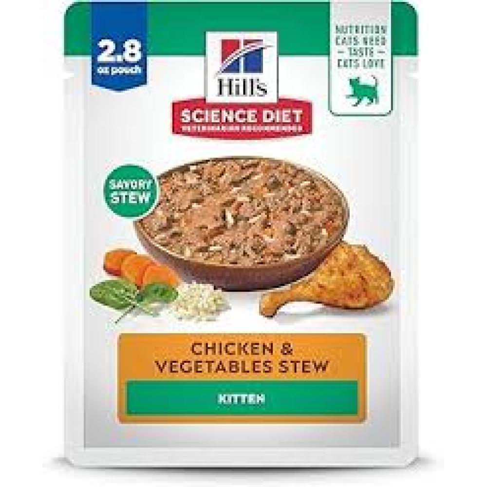 Your kitten will love the taste of Science Diet Kitten Chicken & Vegetable Stew Pouch cat food with its smooth, soft texture. Carefully formulated for the developmental needs of kittens, so they get the best start in life & grow to their full potential.