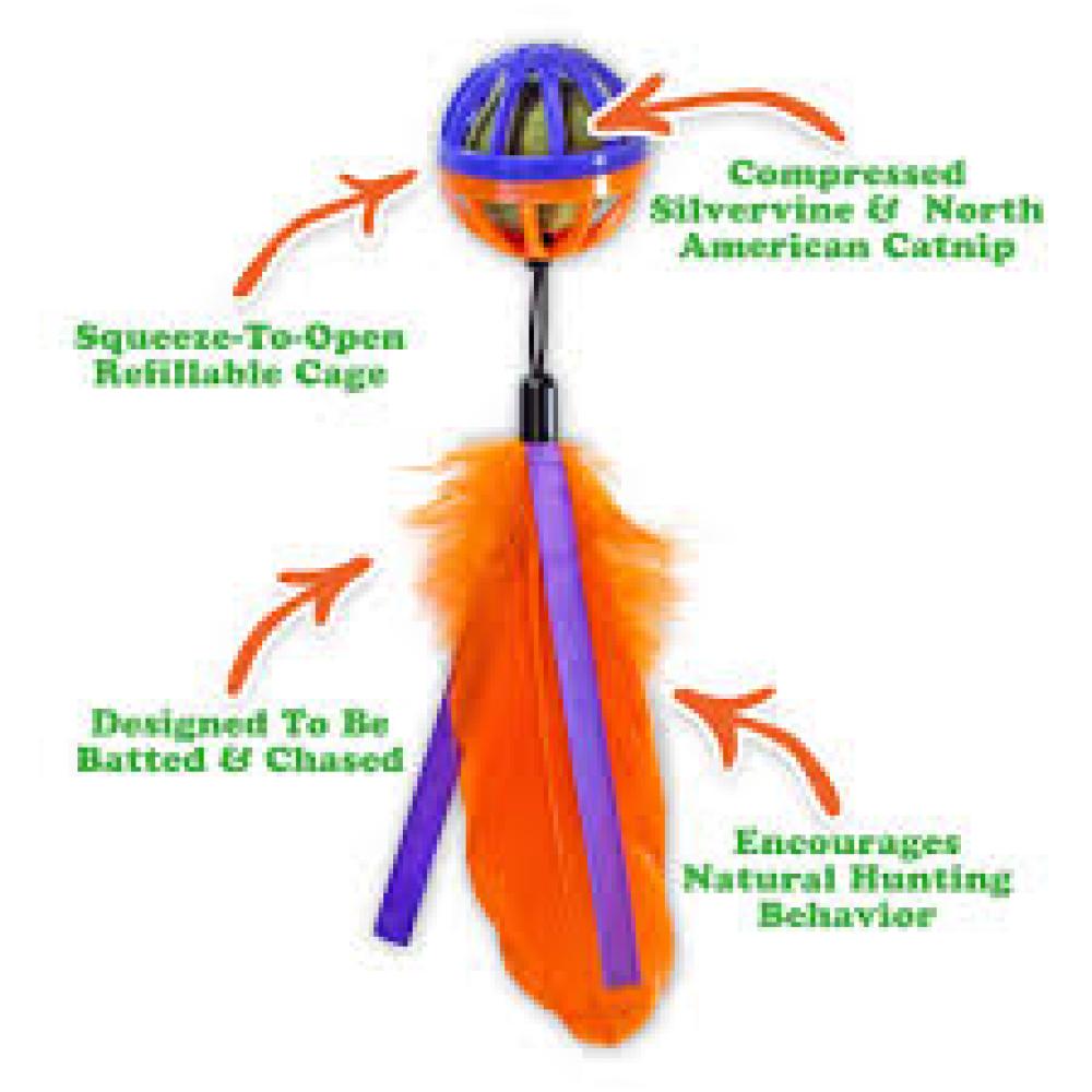 - This toy is double the fun with a compressed catnip and silvervine ball and a refillable cage toy.