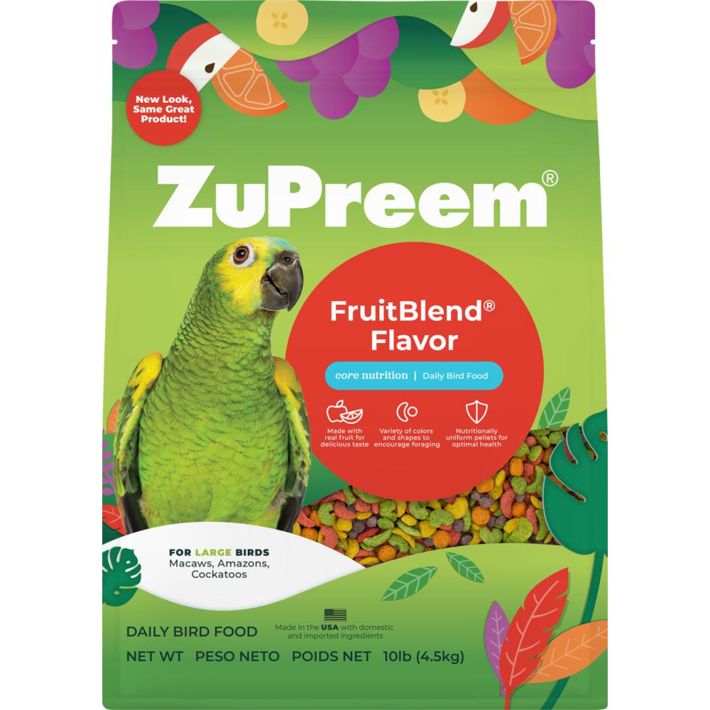 Give your large feathered friend a fun, flavorful, and balanced diet with ZuPreem FruitBlend for Parrots & Conures. Specially designed for Macaws, Amazons, Cockatoos, and other large pet birds, this premium bird food features colorful, fruit-shaped pellets packed with essential vitamins, minerals, and antioxidants to support strong immunity, healthy digestion, brain function, vibrant feathers, and beak strength. The variety of shapes, colors, and fruit flavors encourages foraging instincts and natural eating behaviors, making mealtime exciting, nutritious, and engaging. Formulated as a complete and balanced daily diet, FruitBlend bird food is the perfect main meal and pairs beautifully with your bird’s favorite fresh foods, nuts, seeds, and foraging treats. Recommended by avian veterinarians and trusted by bird owners, this high-quality bird food helps large parrots stay active, healthy, and full of energy. Whether you’re feeding a Macaw, Amazon, or Cockatoo, give them the best nutrition for a happy and thriving life!